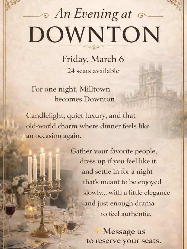 Milltown is a reservation-only dining room built around intention, pacing, and presence.